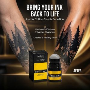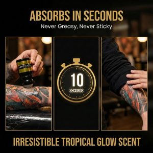 Tattoo Care Ink Glow Roll-On Serum zagotavlja globinsko hranjenje, svilnato mehkobo in tropski sijaj – vse to z elegantno, čisto in enostavno roll-on aplikacijo. Brez mastnih rok. Brez nereda. Samo gladka, sijoča koža in tetovaža, ki zasije – kjerkoli, kadarkoli!