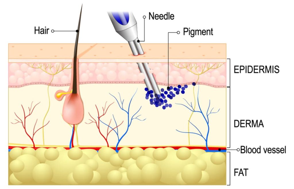 Before applying the ointment to a fresh tattoo for the first time, gently rinse it with lukewarm water (without using soap). Air dry it or gently wipe it with a paper towel. With clean hands!, apply a thin layer of Tattoo Care ointment. Since the structure of the ointment is thicker than a cream, try applying it by scooping the ointment with your finger and applying it to the tattoo by tapping it (picture below). Wait a few moments for the ointment to warm up slightly, and spread it gently, without pulling excessively. You can also apply the ointment just by tapping it without pulling. Repeat this process at least 3 times a day until your tattoo is completely healed (2-4 weeks).